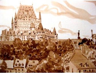 Beautiful Sepia Watercolor Painting of Old Quebec City by Alan Joslin