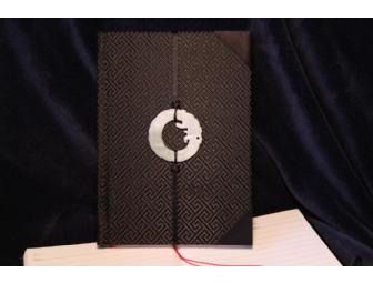 Our exquisite jade-adorned journal has 224 lined pages and an exquisite jade piece on the front cover. 6wx1dx8.5h inches.