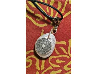 Monterey Sea Glass and a Chartres Cathedral Charm that was hand carried through the great labyrinth in the Cathedral. The Pendant is hung from and adjustable cotton cord. Very special handcrafted item