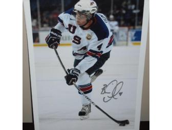 Brian Dumoulin is an ice hockey defenseman who is currently playing for the Boston College Eagles which competes in NCAA's Division I in the Hockey East Conference.He was selected by the Carolina Hurricanes in the 2nd round (51st overall) of the 2009 NHL Entry Draft. This photo was taken when Brian was representing Team USA at the World Junior Championship.