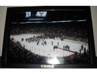 Large framed photo taken after the presentation of the Stanley Cup to the 2011 Boston Bruins.