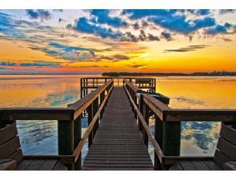 Photograph of sunrise looking out from Longboat Key by Mary Lou Johnson. White mat with black frame under plexiglass. Framed size 22" wide x 18" high.
