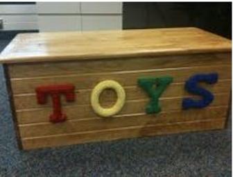 Approximately 18inx18inX4ft this is a beautiful hand made Toy Box!! The hinges stop at whatever point you open the lid to so no little pinched fingers. You can view this item the night of Fall Family Fun Night.