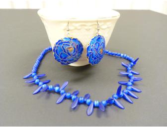 The blue necklace comes with a pair of earrings, in blue and gold cloissone.