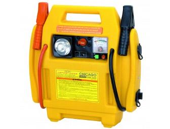 All-in-one 12-volt Power Supply and Jump Starter offers easy jump starts, a 12-volt power port, and a bright work light
