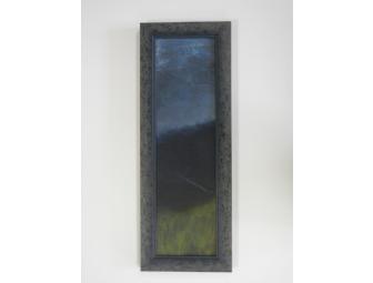 "Sea Cliff Storm" is an original work of art. Chaulk on cardboard, abstract seascape. Painting measures 6" x 22".