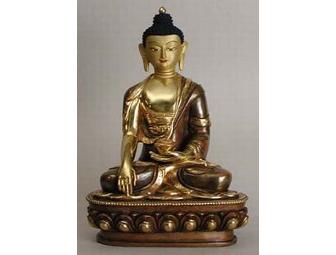 This partially gold-plated Shakyamuni Buddha statue from Namse Bangdzo Bookstore would be a lovely addition to shrine or home.