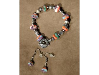 Reactive Colors Bracelet & Matching Earrings Artisan Jewelry Set