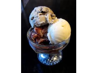A set of five gift cards for Vegan Ice Cream at Lula's Sweet Apothecary. All cards are letter-pressed on heavyweight card stock and come complete with a matching gold envelope, these make a perfect thank you or gift! The gift set includes two one scoop cards, one milkshake, one sundae, and one banana split. Valued at $30.00.