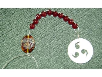 The word bead comes from the Anglo-Saxon word 'bede' which means prayer. This strand of beads is carnelian with bone and Chinese lampwork beads. It is used to pray for your blessings. The beads slip along the strand as you pray. It comes on a card that explains how to use it.