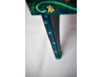 This stand is a unique one-of-a-kind piece of art! Because all stands and artwork have been sealed, they can easily be wiped down with a damp towel for easy cleaning.  It is recommended that all stands be used indoors as a precaution against the elements.
