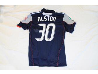 This blue Revolution jersey was worn by defender Kevin Alston in the Revolution's Breast Cancer Awareness Night on Oct. 1, 2011, against Seattle Sounders FC at Gillette Stadium. The jersey is adorned with an MLS W.O.R.K.S. pink ribbon on the right chest, and is autographed on the back by Alston. All proceeds from this auction will be donated to the American Cancer Society's Making Strides for Breast Cancer of Boston.