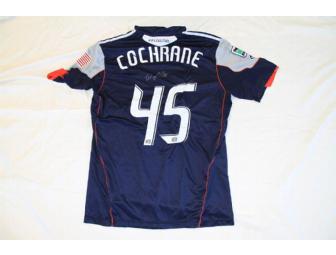 This blue Revolution jersey was worn by defender Ryan Cochrane in the Revolution's Breast Cancer Awareness Night on Oct. 1, 2011, against Seattle Sounders FC at Gillette Stadium. The jersey is adorned with an MLS W.O.R.K.S. pink ribbon on the right chest, and is autographed on the back by Cochrane. All proceeds from this auction will be donated to the American Cancer Society's Making Strides for Breast Cancer of Boston.