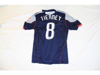 This blue Revolution jersey was worn by defender Chris Tierney in the Revolution's Breast Cancer Awareness Night on Oct. 1, 2011, against Seattle Sounders FC at Gillette Stadium. The jersey is adorned with an MLS W.O.R.K.S. pink ribbon on the right chest, and is autographed on the back by Tierney. All proceeds from this auction will be donated to the American Cancer Society's Making Strides for Breast Cancer of Boston.