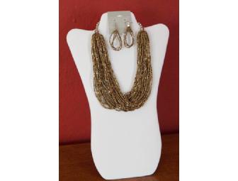 Multi-Strand Golden Necklace and matching Earrings; 20 inches in length