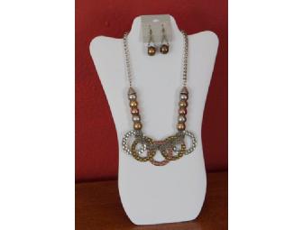 Brass, Copper, and Metal Necklace and matching Earrings; 22 inches in length