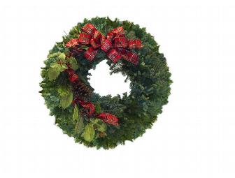 Celebrate the holiday season by displaying this beautiful handcrafted 24” holiday wreath of Noble fir. The Lakewood Historical Society has been creating holiday wreaths for over 25 years. The 2011 wreath is adorned with a traditional red plaid ribbon, festive pine cones and garland. This wreath makes a wonderful gift for family, friends or a business associate.