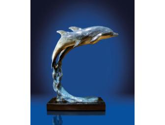 World Class Master Sculptor, Laran Ghiglieri, unites his artistic mastery with a tender maternal theme to create Playtime, "The Dolphins". The artist dives into the bluest of oceans to capture the water's most endearing mammal, the dolphin. Leaping in unison above the waves, this mother and her offspring frolic in lighthearted whimsy and affection.