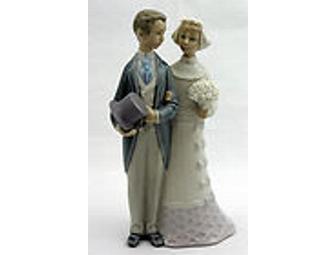 This lovely Lladro china figurine is 7 3/4" tall 3 1/2" wide and 3" deep, and was retired from production in 2004. This bride and groom are in mint conditon without any cracks, chips, breaks or repairs. Use as a cake topper for your wedding cake and enjoy forever. No original box, but will be carefully wrapped and boxed for shipping.