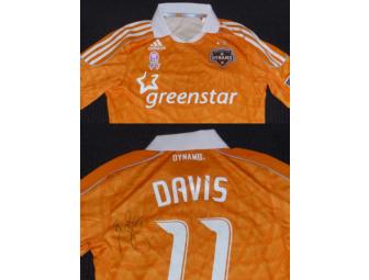 Autographed jersey with special edition pink ribbon patch worn by Brad Davis during the October 1, 2011 Dynamo vs. Fire match.