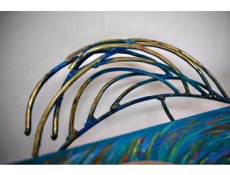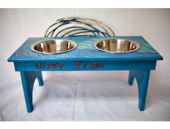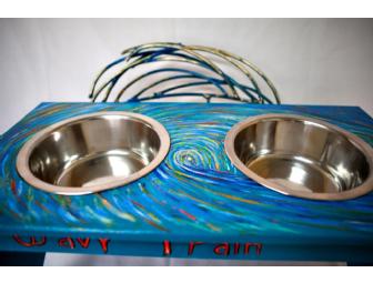 One of our most unique pieces, Encinitas artist Danny Salzhandler, has created a 1/2 feeding stand 1/2 sculpture! (As a welding artist, we would expect nothing less.) Entitled "Wavy Train" Danny's stand captures the essence of beach living with both the painted and sculptured waves!