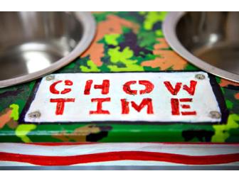 "Chow Time" by San Diego artist Bill Kaye. "Come and get it!" FACE is so excited to have a feeding station painted to support our troops. The screws are actual screws, not paint, and the back skirt/apron is a metalic material that looks like aluminum foil. Legs and inside are painted black for a very finished look. Great work, Bill!