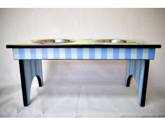 Awesome pop art stand by local San Diego artist Heather Birrcher. The stand is great for both she or he dogs and is SO cute! Underside is painted in blue/white stripes also.