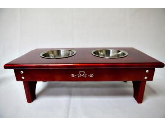 Each stand comes with two stainless steel water and food bowls (2 quart for large dog stands, 1 pint for small dog/cat stands).