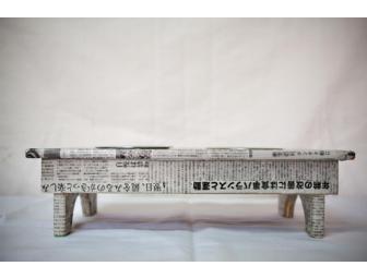 An imported Japanese newspaper and cherry blossom images were used to create a unique super-cute, Asian inspired piece of art! Artist Emily Rood is currently based in Ocean Beach, San Diego.