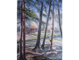 This lovely, calm original watercolor painting is on a 16” x 12” canvas. It has a light varnish so it does not need glass protection. Framed.