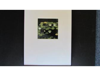 Thoughts of Monet is matted and framed under glass using a black metal frame measuring 11" w x 14" h. The actual image measures 4.75" x 4.75". Ready for hanging.