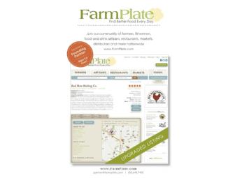The highest bidder will receive a premium listing on FarmPlate.com, a revolutionary online community that connects farmers, fishermen, foragers, food artisans, restaurants, markets, distributors and foodies everywhere. We have over 30,000 business listings across the country—and we're growing every day!