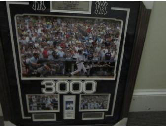 Historic photo of the Yankee Captain collecting his 3,000th hit coupled with a copy of the game ticket.