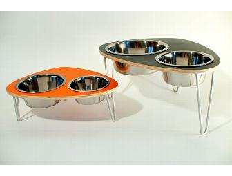 Raised feeder, 10" high, with stainless steels bowls (1 qt / 2 qt) with aluminum hairpin legs in black by ModPetNYC.