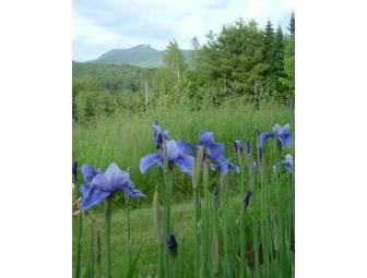 Beautiful photo with a unique composition of irises and Camel's Hump Mountain. Photo is 8" x 10" and is elegantly matted and framed.