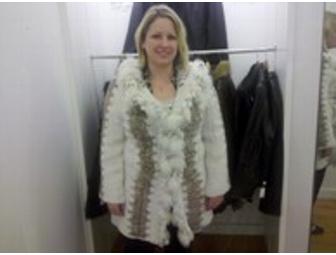 - Ivory Knitted "Chinchilla" Rex Stroller Coat with Fox Trimmed Hood