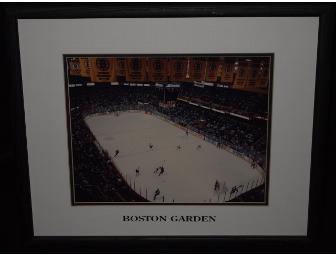 This 21" x 17" framed portrait depicts a Bruins game in the Boston Garden. The picture captures a 3 to 2 Bruins score in the second period... GO BRUINS! I hope they won that game!