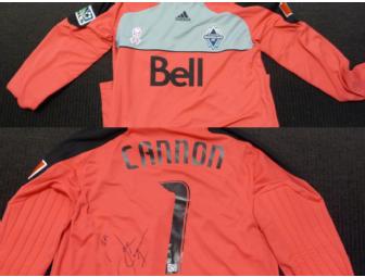 Autographed jersey with special edition pink ribbon patch worn by Joe Cannon during the October 6, 2011 Whitecaps vs. DC United match.