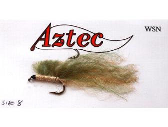 The method of presentation depends very much upon the particular version of the Aztec you are fishing and the species of fish you are targeting. Fish on a floating or sinking line in fresh still water or salt water, with a strip retrieve or roly-poly retrieve. Use an upstream- and across quick-strip or downstream swing on a sinking, sink-tip, or floating line in running water. The Aztec will even work with a greased line presentation for salmon and steelhead.