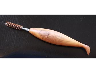 This beautiful hand-turned dubbing brush is a handy tool for any fly tier or rod builder. The brush is perfect for fluffing out the dubbing, while the handle doubles as a burnishing tool for flattening wraps on custom built rods. The length of the handle is approximately six inches.