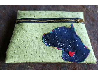 This pit bull (in tribute to a three-legged rescue dog named Wilbur) silhouetted designer pouch is perfect to fit in your purse or to carry by itself. The pouch is lined with the same colored fabric as the silhouette.