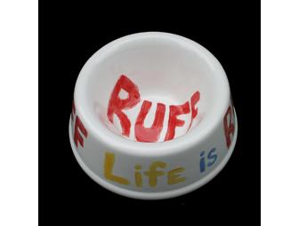 One-of-a-kind ceramic dog bowl painted and signed by Kate Walsh.
