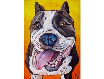 Custom wide edge frameless canvas pet portrait measuring 12" x 16" painted in vivid and whimsical acrylic colors of your pet! With a few photos of your bullie, I will create a custom one of a kind My Paw Portrait of your beloved family baby! Each canvas is signed, dated and titled and numbered within a series, making sure it is your one-of-a-kind custom piece. Winner to supply photos and work with artist on creating that perfect piece.