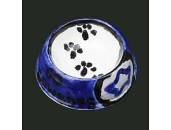One-of-a-kind ceramic dog bowl painted and signed by JoJo Wright.