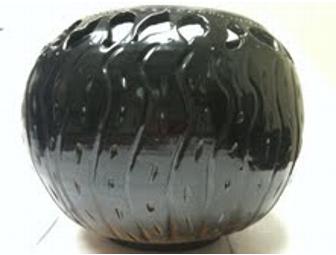 Porcelain vase - Altered wheel thrown fired to cone 6 with a satin black glaze. Artist is Lori Hicke, Art Department staff, PCC Rock Creek.
