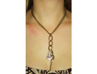 100% antique brass chain, hand blown glass pendant, 16”-18”