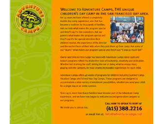 This $400 certificate entitles the bearer to one week of Adventure Camps Summer Camp 2012.