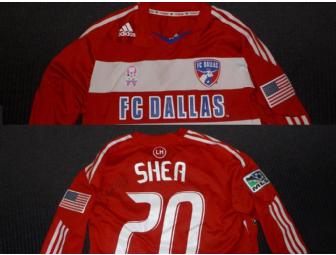 Autographed jersey with special edition pink ribbon patch worn by Brek Shea during the October 15, 2011 FC DAllas vs. Vancouver Whitecaps match.