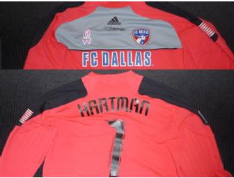 Special edition pink goal keeper autographed jersey with special edition pink ribbon patch worn by Kevin Hartman during the October 15, 2011 FC Dallas vs. Vancouver Whitecaps match.