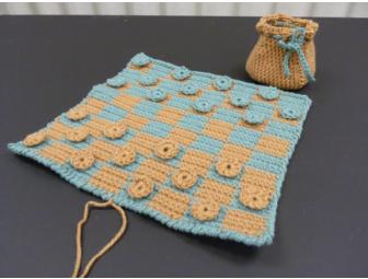 Perfect for traveling! This blue and taupe coloredboard brings new life to a classic game! Each piece was hand crocheted by WACAP staff member, Jess Stark.
